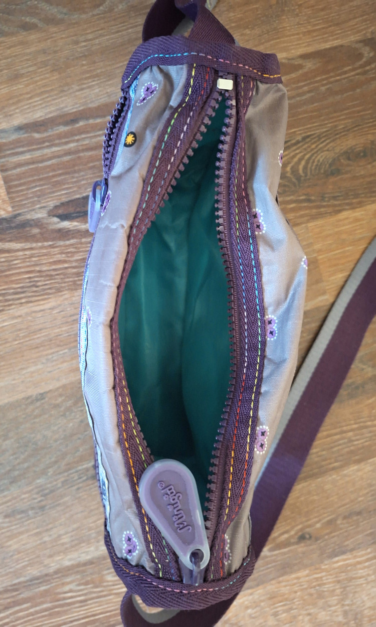 Уже третья сумочка из данной коллекции, и, как всегда, принесла массу приятных эмоций. Очень удобна, функциональные боковые кармашки, яркий внешний вид, контрастная подкладка усиливает яркий эффект, не смотря на маленький размер, сумочка вместительная - паспорт для путешествий, небольшой кошелечек , визитница и даже маленькая бутылочка с водой - помещается все саме необходимое. И, как всегда, милое дополнение к сумочке - косметичка! Спасибо магазину и производителям сумочки!